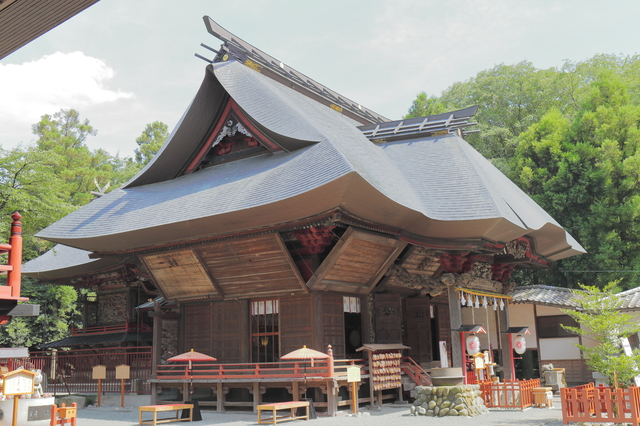 安産の女神・木花佐久夜毘売命を御祭神とし、各地の産泰神社の総本社として古くから安産・子育てを願う人々に縁のある神社です。境内には「安産胎内くぐり」「安産抜けびしゃく」「戌の石像」の3つのゆかりある場所があり、順に巡って手を合わせるのが参拝のお作法として地域に根づいています。「抜けびしゃく」の底のない柄杓は、「水がするりと抜けるようにお産が軽くなりますように」という願いを形にしたもの。本殿・拝殿など4棟は群馬県重要文化財に指定されており、静かな境内の佇まいはただ座っているだけでも心が落ち着く雰囲気です。