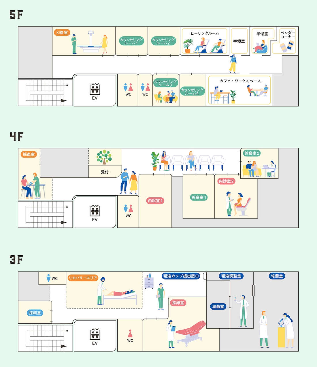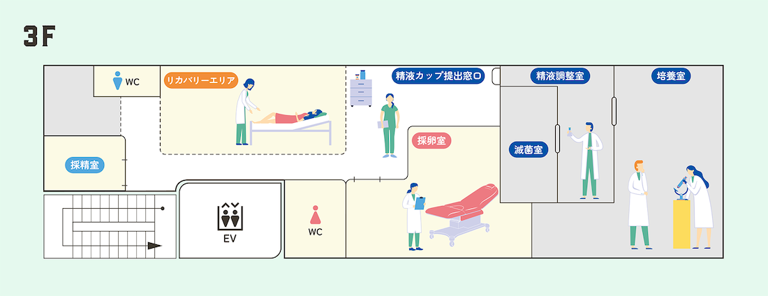 3階(採卵室・培養室・精液調整室・滅菌室・採精室・リカバリーエリア・トイレ1・2)