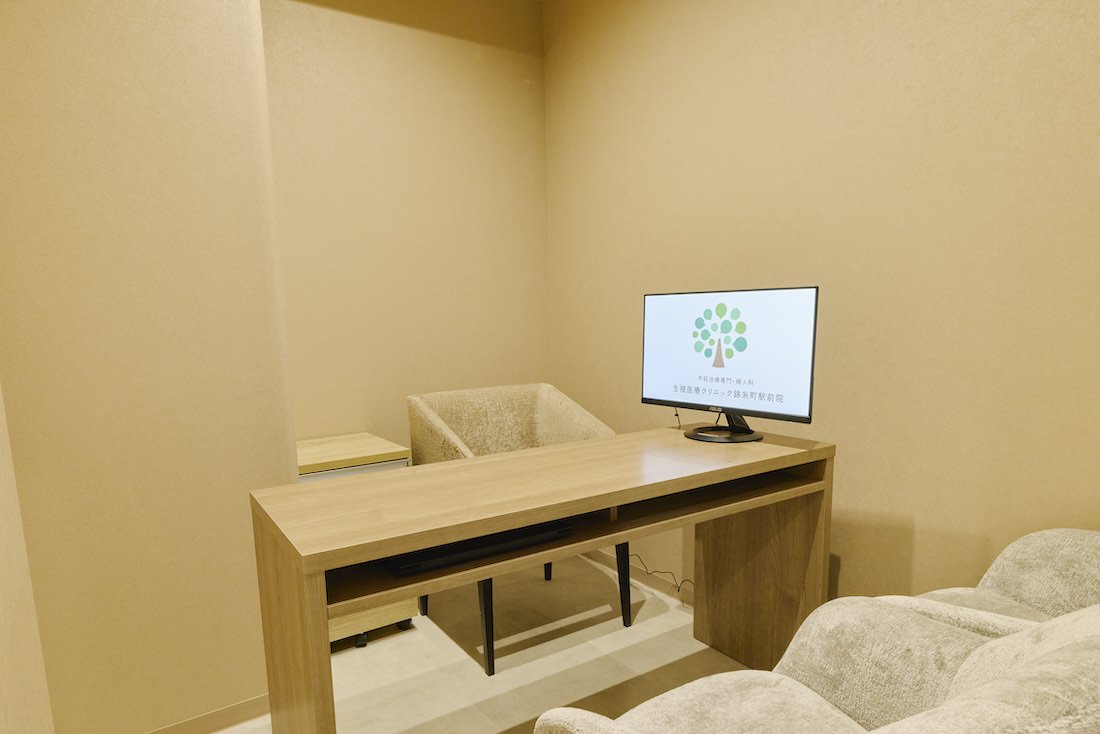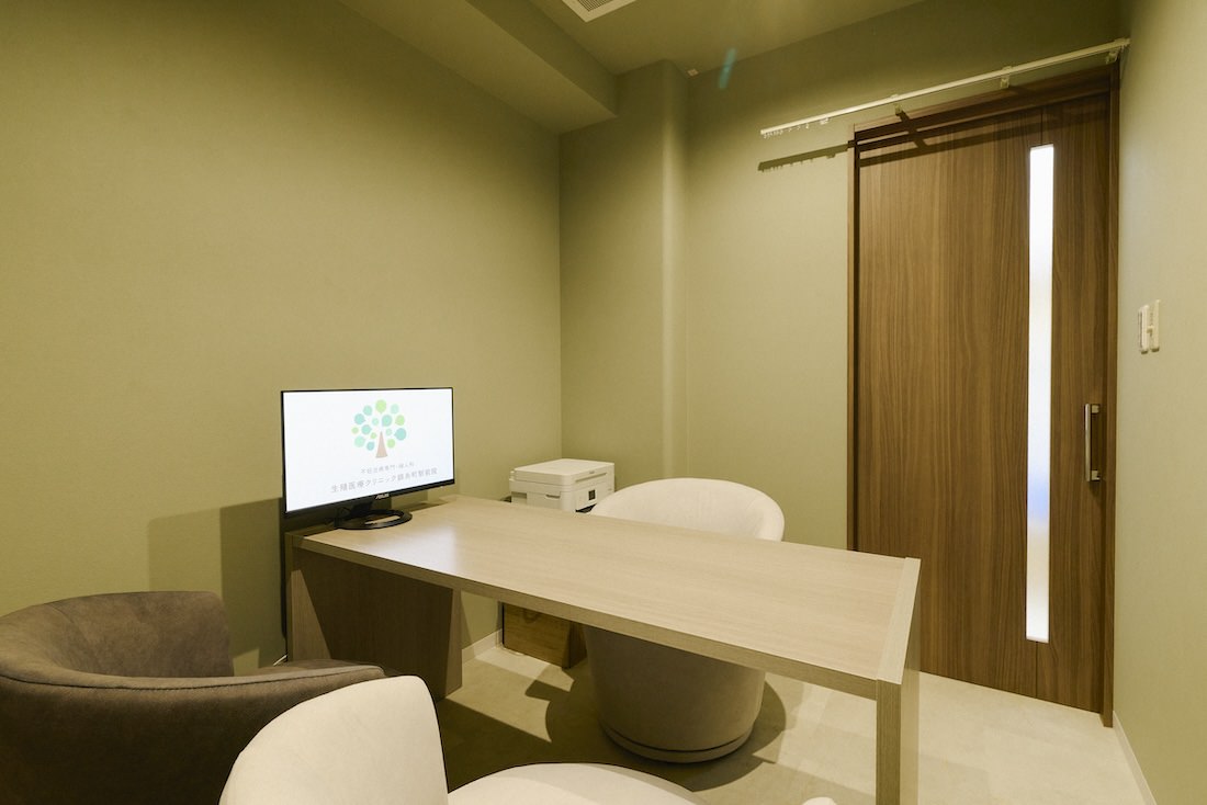 多くの患者さまの声からの「他の患者さまに相談内容を聞かれたくない」というお声からスタッフとお話しいただく全ての部屋を個室にしております。